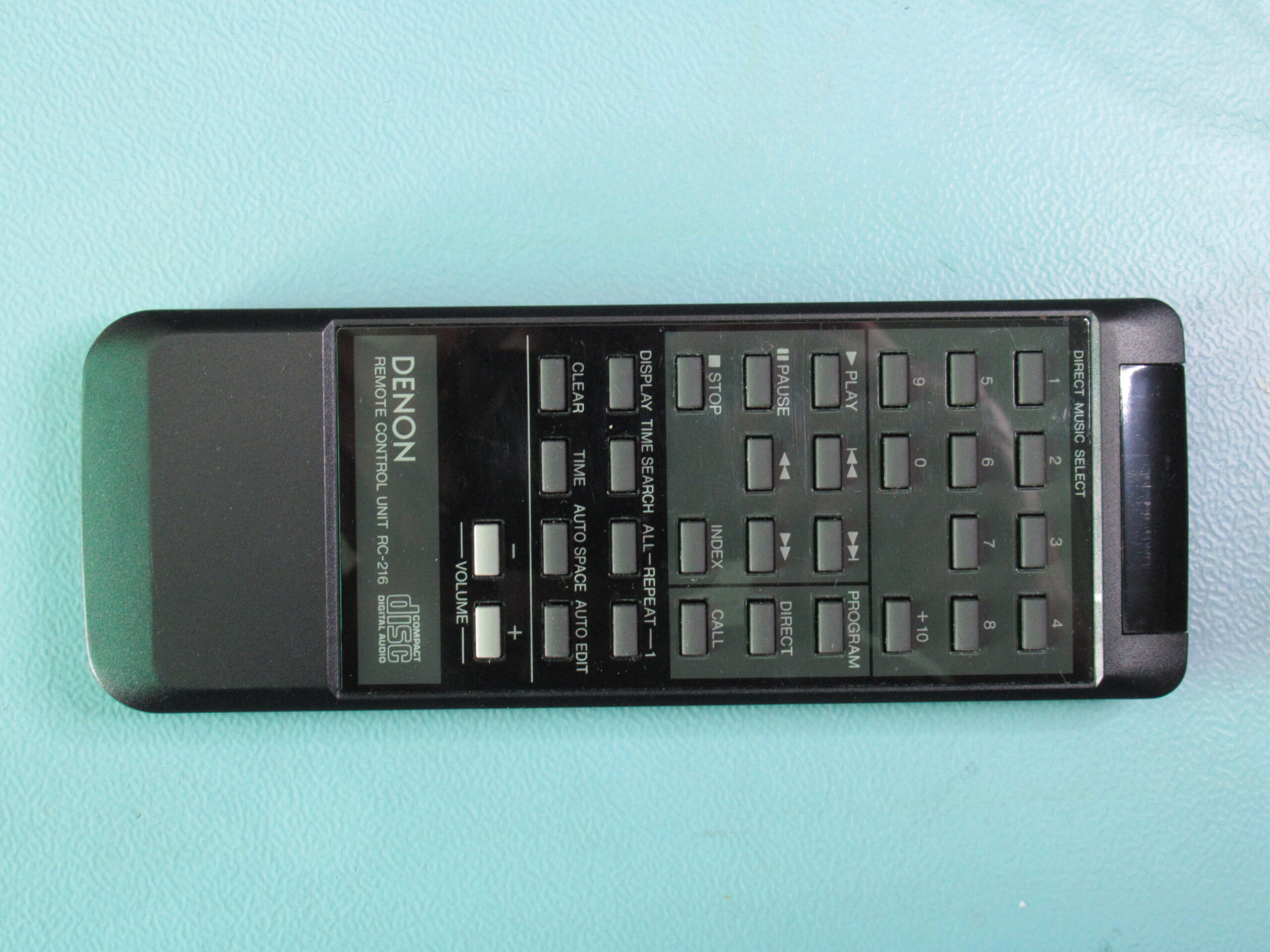 Mit dabei: Fernbedienung DENON RC-216 und der Originalkarton mit den Styroporteilen.