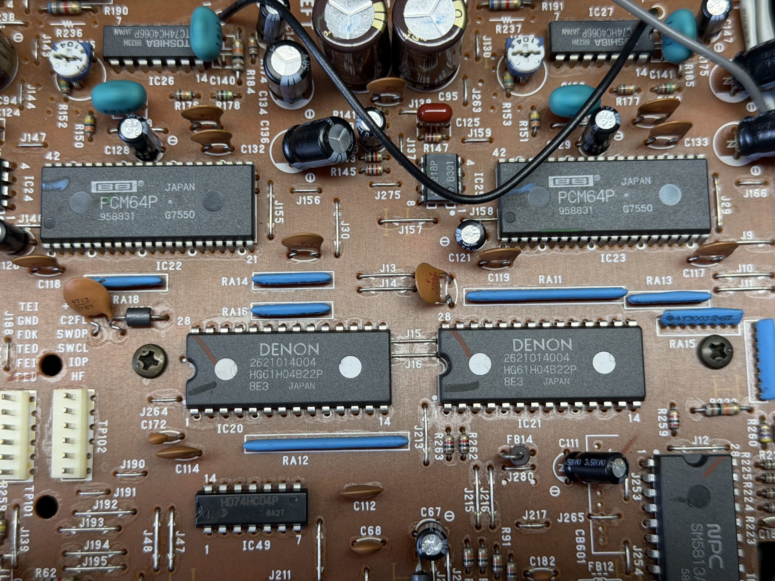 Ein vollständiger Abgleich nach Herstellervorgaben wurde durchgeführt. Der SONY-Laser KSS-151A ist noch einwandfrei. Das Augenmuster des HF-Signals ist scharf und der Pegel (1,3V p-p) einwandfrei.