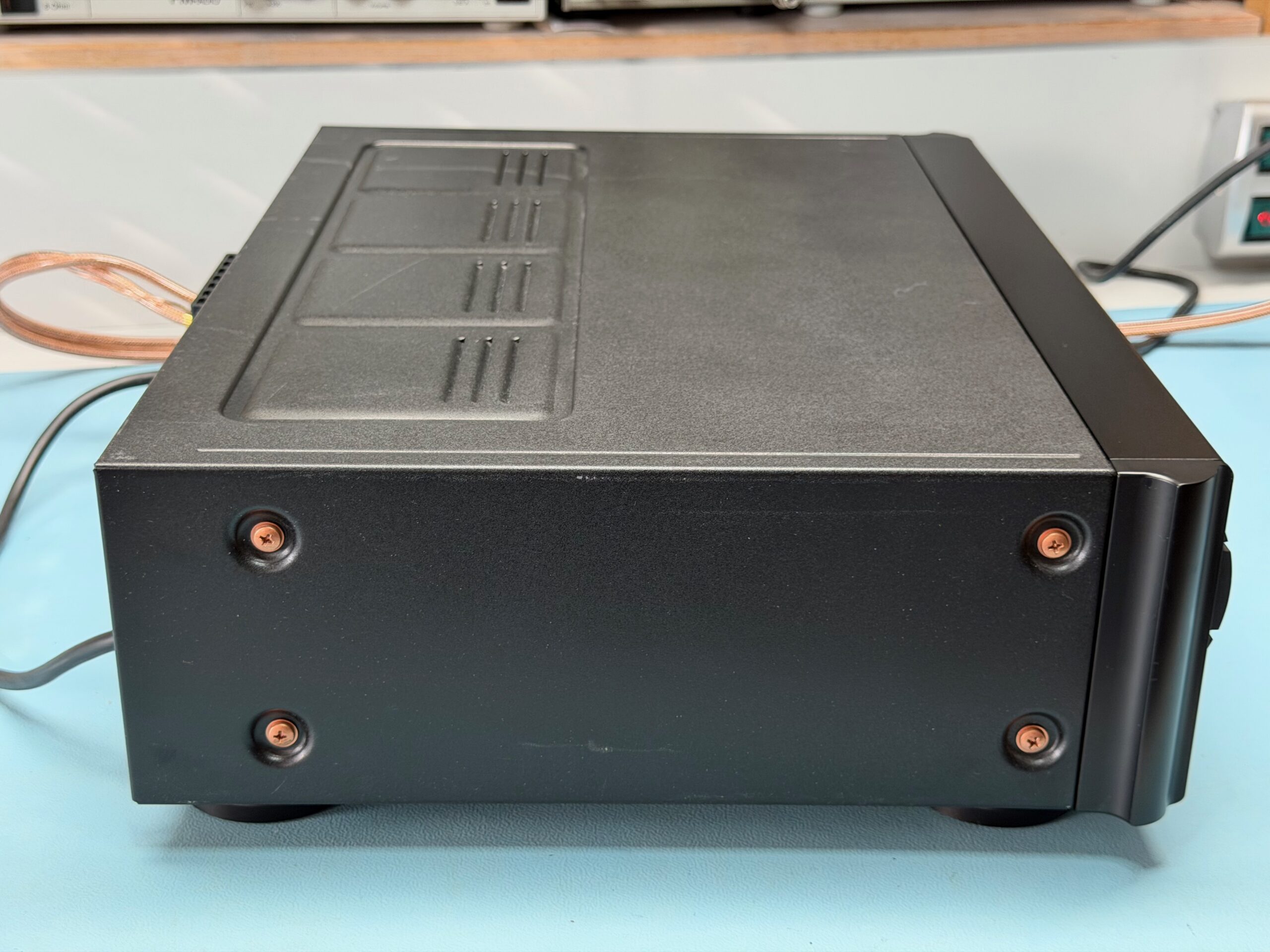 Die Abtasteinheit mit dem Schwenkarmlaufwerk Philips CDM4/MD ist aus Vollmetall und funktioniert einwandfrei. Das Gerät spielt auch „Problem-CDs“ sowie CD-Rs ohne Störungen.